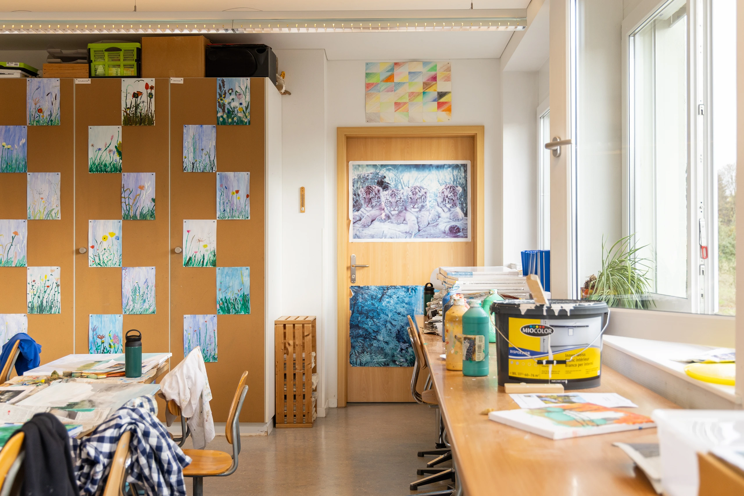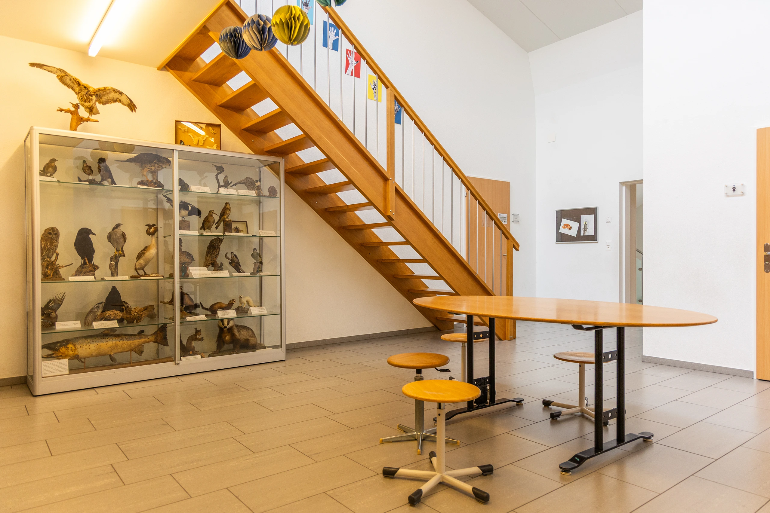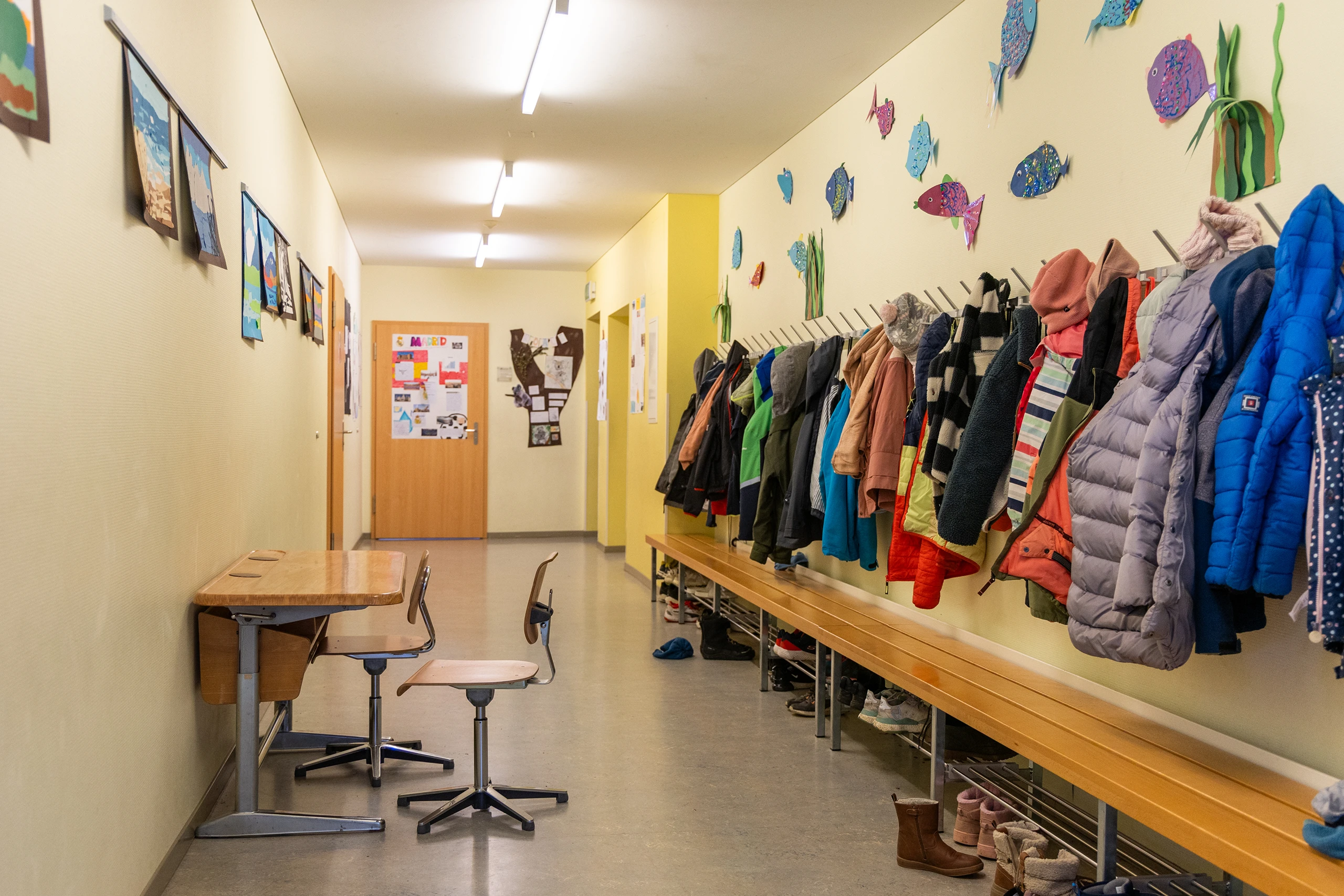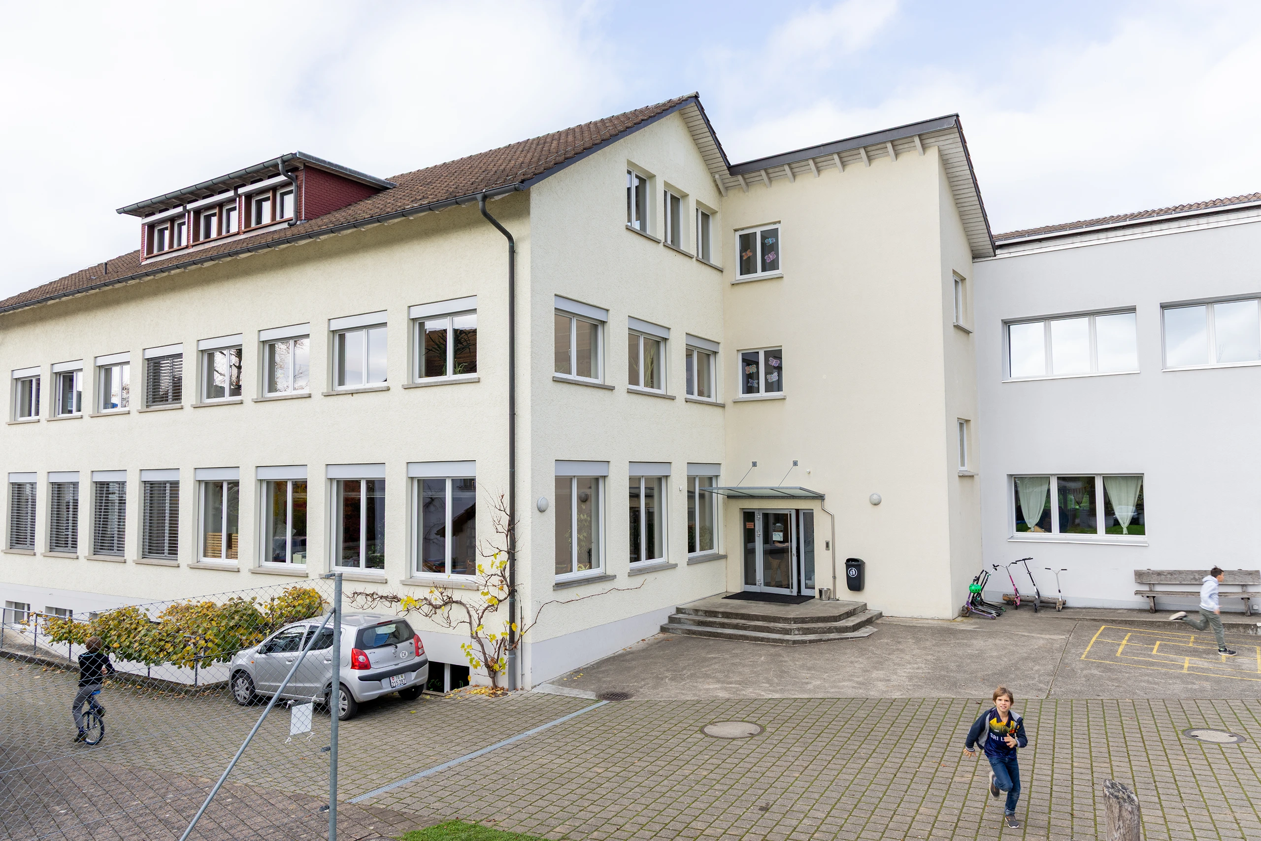 Unsere moderne und liebevoll gestaltete Schulanlage bietet den Kindern Raum, sich zu entfalten, kreativ zu sein und sich wohlzufühlen. Helle Klassenzimmer, gut ausgestattete Fachräume, ein grosszügiger Pausenplatz und ein einladender Essbereich bilden den Rahmen für einen lebendigen und strukturierten Schulalltag.