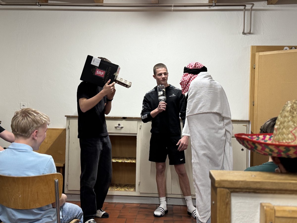 Nach einem köstlichen Nachtessen startete das abwechslungsreiche Abendprogramm: In rund zehn Schülergruppen wurden verschiedene Länder wie Madagaskar, Italien, Balkanstaaten, Spanien, die Schweiz oder China kreativ präsentiert. Die Darbietungen wurden rund vier Wochen im Voraus einstudiert und überzeugend mit Kostümen, Tanz, Theater oder originellen Interview-formaten präsentiert.