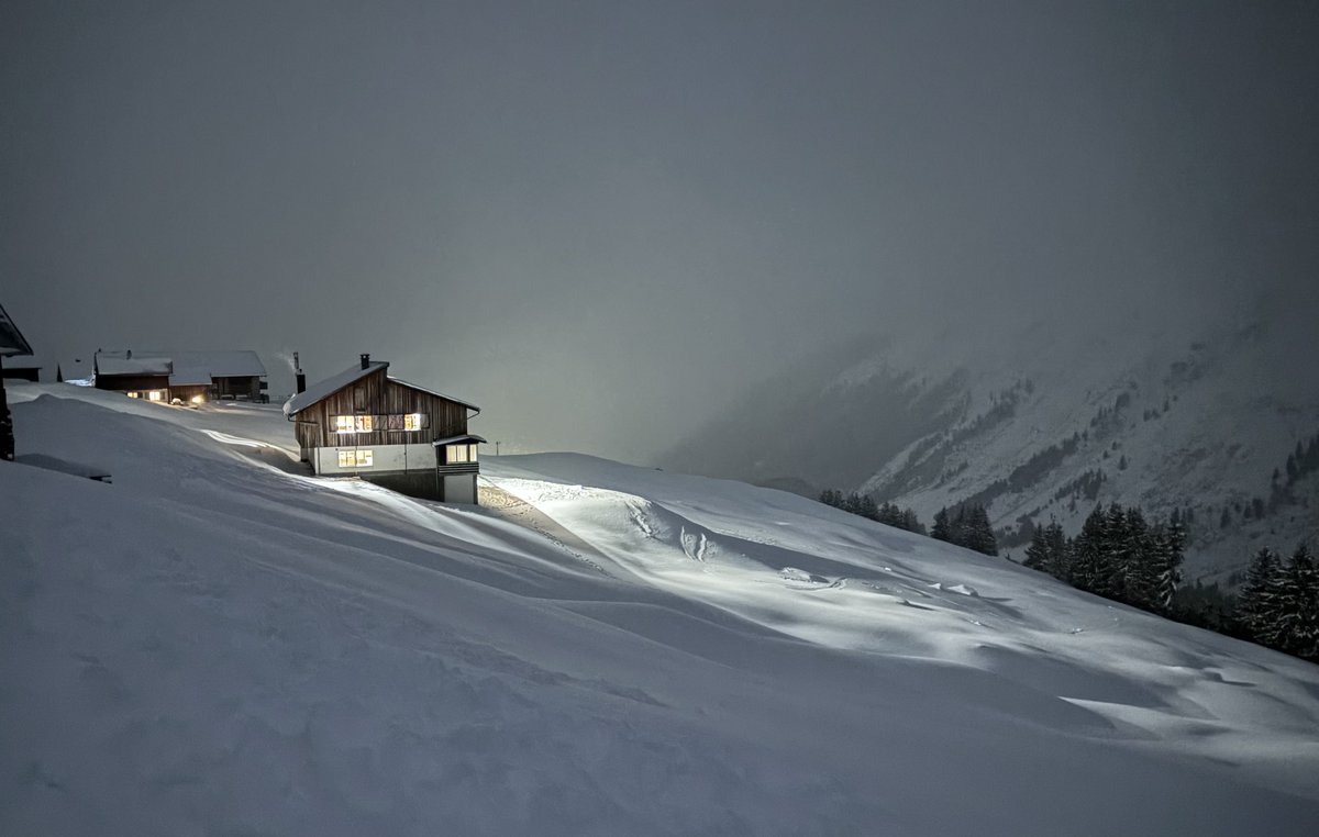 Kaum angekommen, ging es direkt auf die Ski und Snowboards, um sich mit den Pistenverhältnissen vertraut zu machen. Am Nachmittag bezogen wir unser Lagerhaus in unmittelbarer Nähe der Piste. Gegen Abend brachte ein Pistenbully unser lang ersehntes Gepäck direkt zum Haus.